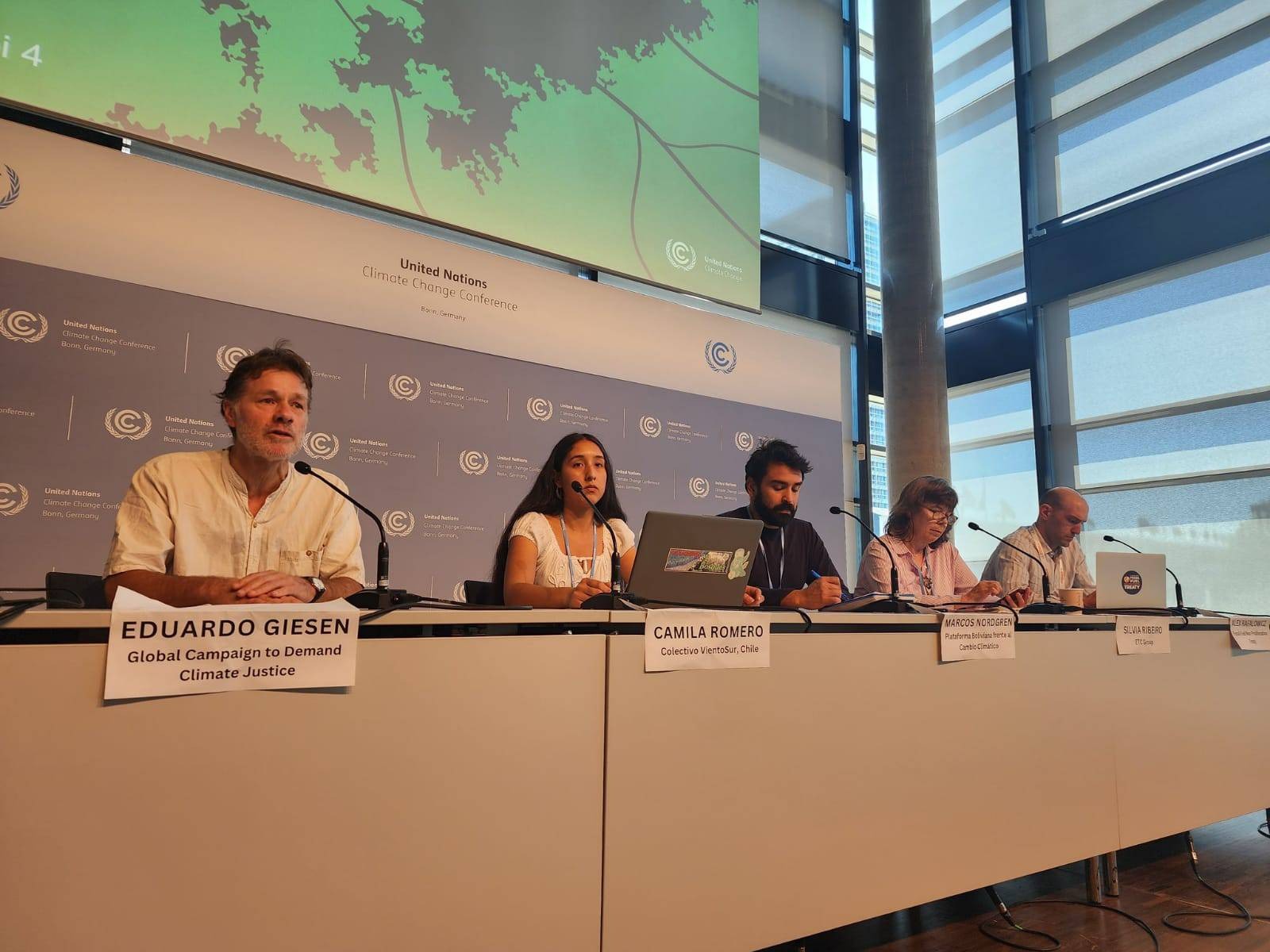 Articulación global de justicia climática denuncia en Bonn la promoción de falsas soluciones y reclama el fin del extractivismo y una transición justa en América Latina y el Caribe